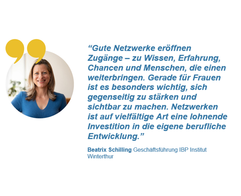 Beatrix Schilling, Co-Präsidentin von BPW Schaffhausen, plädiert für mehr Sichtbarkeit und Austausch unter Frauen. Netzwerke seien nicht nur Karrieretools, sondern Räume für gegenseitige Unterstützung, Inspiration und konkrete Entwicklungsschritte.